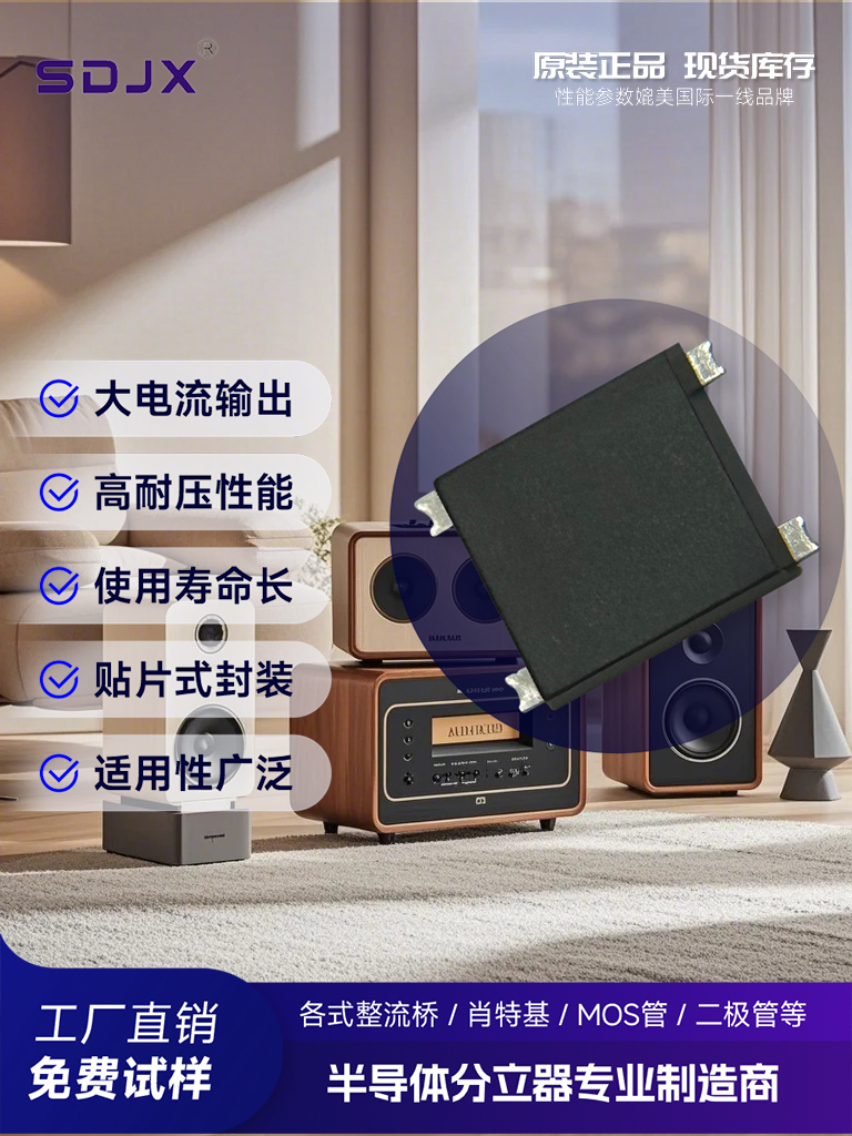 首先,MSB60B具备强大的流电能力。其最大正向电流达6安,能够稳定支持高负荷设备的运行。同时,最大反向峰值电压为100伏,确保在各种复杂工况下的安全稳定。对于音响等需要高电流输出的应用领域,MSB60B提供了可靠的解决方案,极大地提升了设备的整体性能。