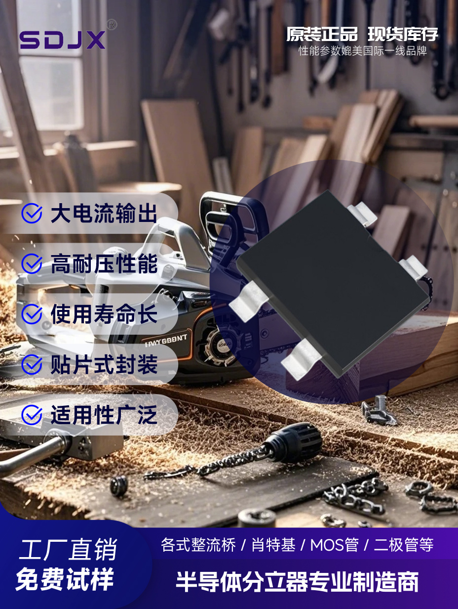 HBS404四方形整流桥在性能上毫不逊色于进口型号。其最大反向峰值电压达400伏,最大正向电流4安,能够轻松应对电锯等高负荷设备的电流需求。特别值得一提的是,它的最大正向浪涌电流高达130安,这意味着在设备启动或突发负载时,HBS404能够提供更强的电流承受能力,有效避免了因电流冲击导致的器件损坏。
